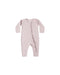 This sweet pointelle jumpsuit features delicate ruffle detail along the zipper, combining cozy comfort with timeless charm.