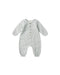 Long sleeve jumpsuit crafted from soft organic cotton gauze, featuring coconut buttons down the chest, hidden snaps along the inseam for easy changing, and elastic at the sleeve and leg openings for a perfect fit.